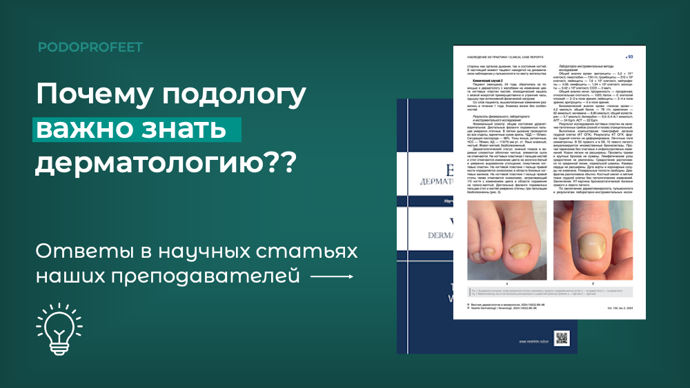 Потому что современная подология — это не просто уход за стопой. Это подологическое мышление, умение распознавать изменения кожи и ногтей, понимать их причины и вовремя направить пациента к нужному специалисту.